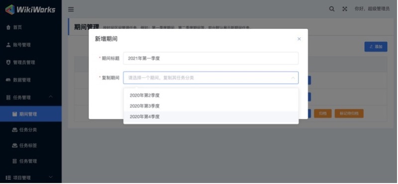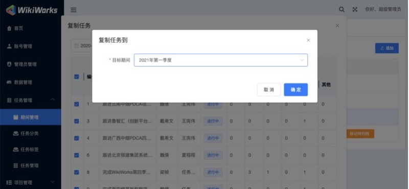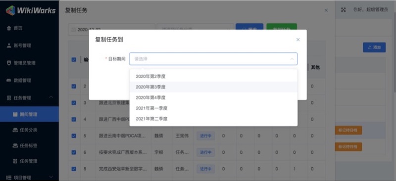 如旧区间有未完成任务,可「复制任务」至新的「目标区间」,如图所示: