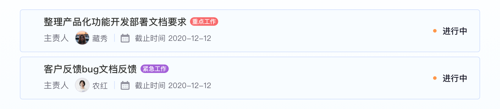 当项目负责人梳理好需要做的事项后,就会将事项分配给对应的执行人,执行人需要在规定范围内完成事项,将事项的成果提交给项目负责人审核。