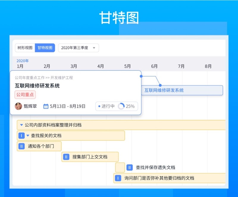 用户将任务与项目关联起来,邀请其他成员一起开展工作,共同达成公司战略。